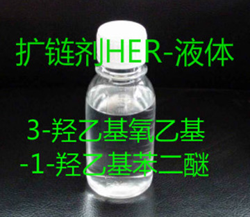 作為TDI/MDI系列聚氨酯制品的擴鏈劑,廣泛應(yīng)用于聚氨酯粘合劑、涂料、密封膠、彈性體、PU泡沫、氨綸、體育設(shè)施等領(lǐng)域。該產(chǎn)品尤其適合于中、高硬度的制品。與固體HER相比具有使用方便、用量少的特點。并且,由液體HER-L制成的聚氨酯制品除具有由固體HER制成的產(chǎn)品所具有的常規(guī)性能外,還具有優(yōu)異的抗張強度、延伸率、柔軟撓曲性能等特點。該產(chǎn)品可溶于二甲基乙酰(DMAC)。